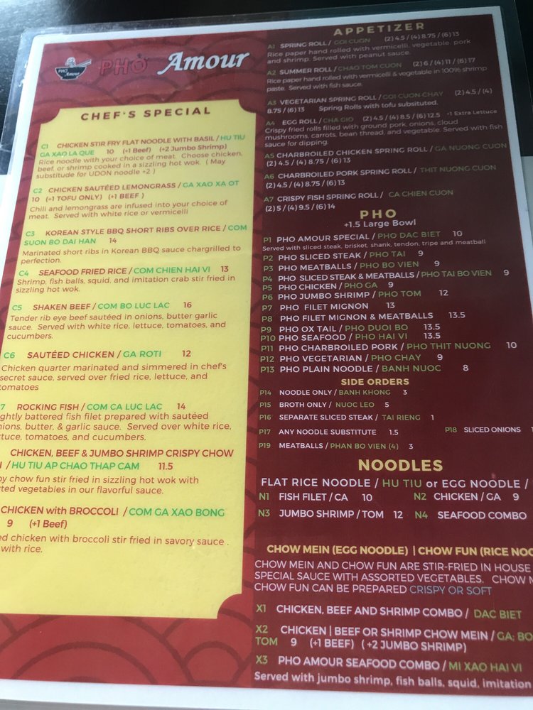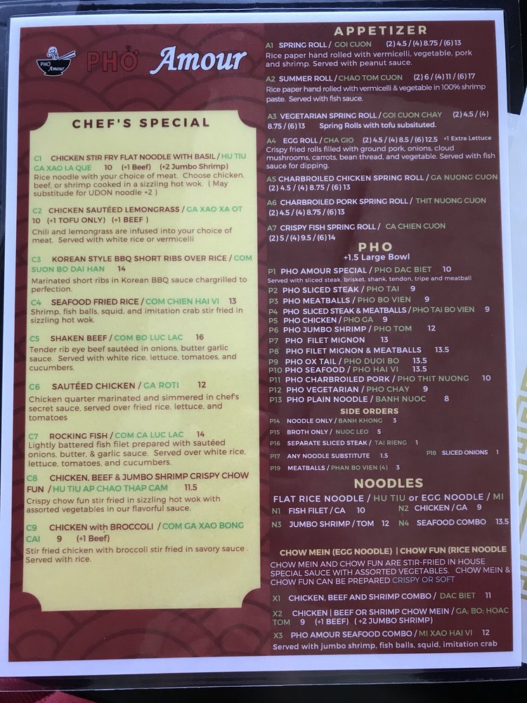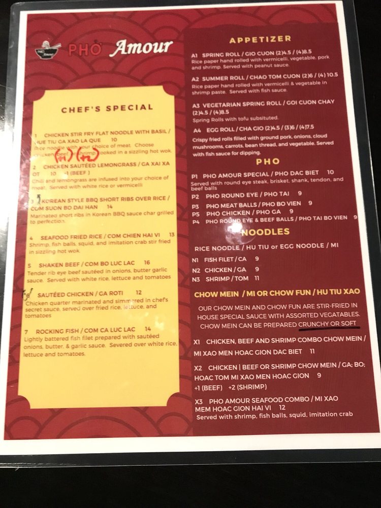 With services like delivery, takeout, and a welcoming outdoor seating area for dogs, Pho Amour is dedicated to accommodating all your dining needs. Enjoy a casual dinner after work or celebrate special occasions with their catering options.