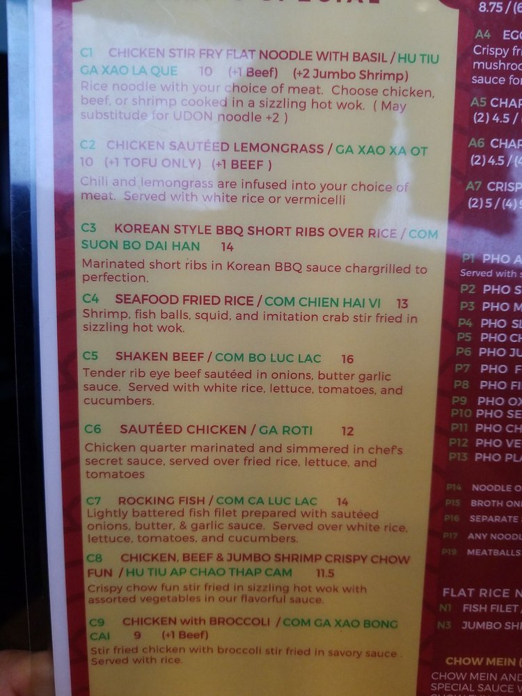Pho Amour takes pride in its diverse menu, which features vegan and vegetarian options alongside enticing meat dishes. Indulge in the Stir Fry Flat Rice Noodle with Basil or the Seafood Udon Special Soup, both showcasing freshness and bold flavors that tantalize your taste buds. The charbroiled vermicelli bowls, including Charbroiled Chicken and Pork, offer a savory experience that keeps patrons coming back.