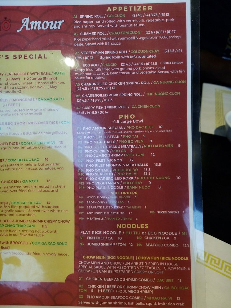 Welcome to Pho Amour, a delightful gastronomic sanctuary where Chinese and Vietnamese flavors unite. Located at 16421 Sierra Lakes Pkwy, Fontana, CA, this trendy eatery offers a cozy, intimate atmosphere perfect for family gatherings or a casual meal with friends.